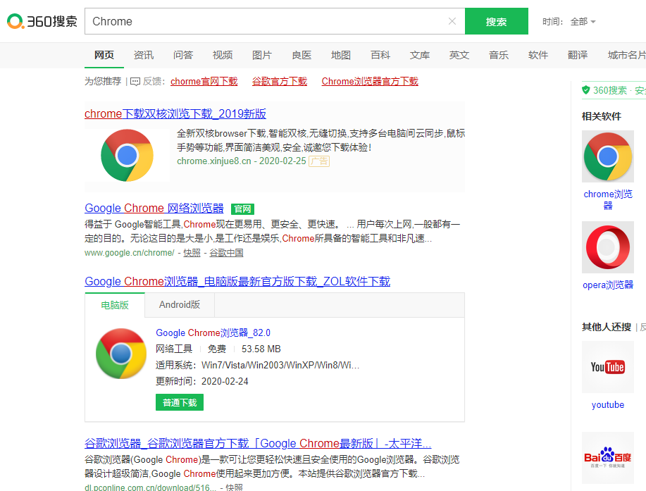 一般官网的域名会带有软件(Chrome)或软件开发商(Google)的名称;