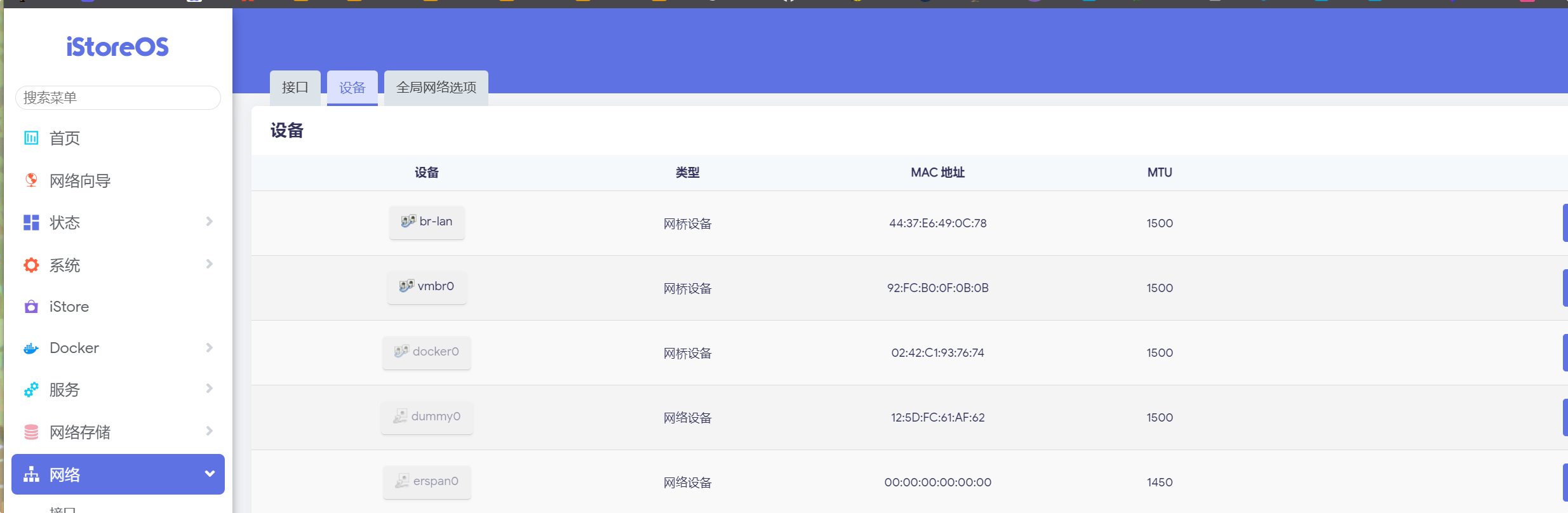 在OpenWRT LuCI 网络->接口->设备 里面创建一个网桥设备 vmbr0,MAC地址MTU啥的会自动给你生成不用管,勾上允许启动空网桥。