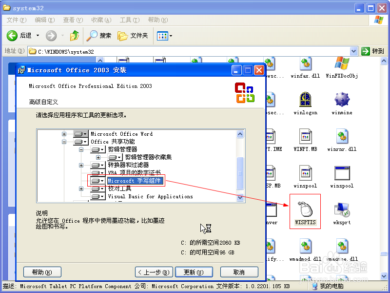 安装完整版的 Office,在安装时注意勾选“Microsoft 手写组件”