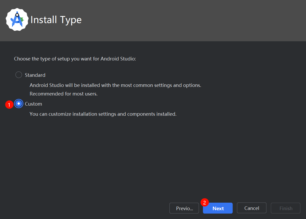 打开 Android Studio 安装 Android SDK。注意 Android Studio 不会自动读取环境变量,需要自行设置安装目录。安装目录选择错误可能会导致安卓虚拟机无法使用。